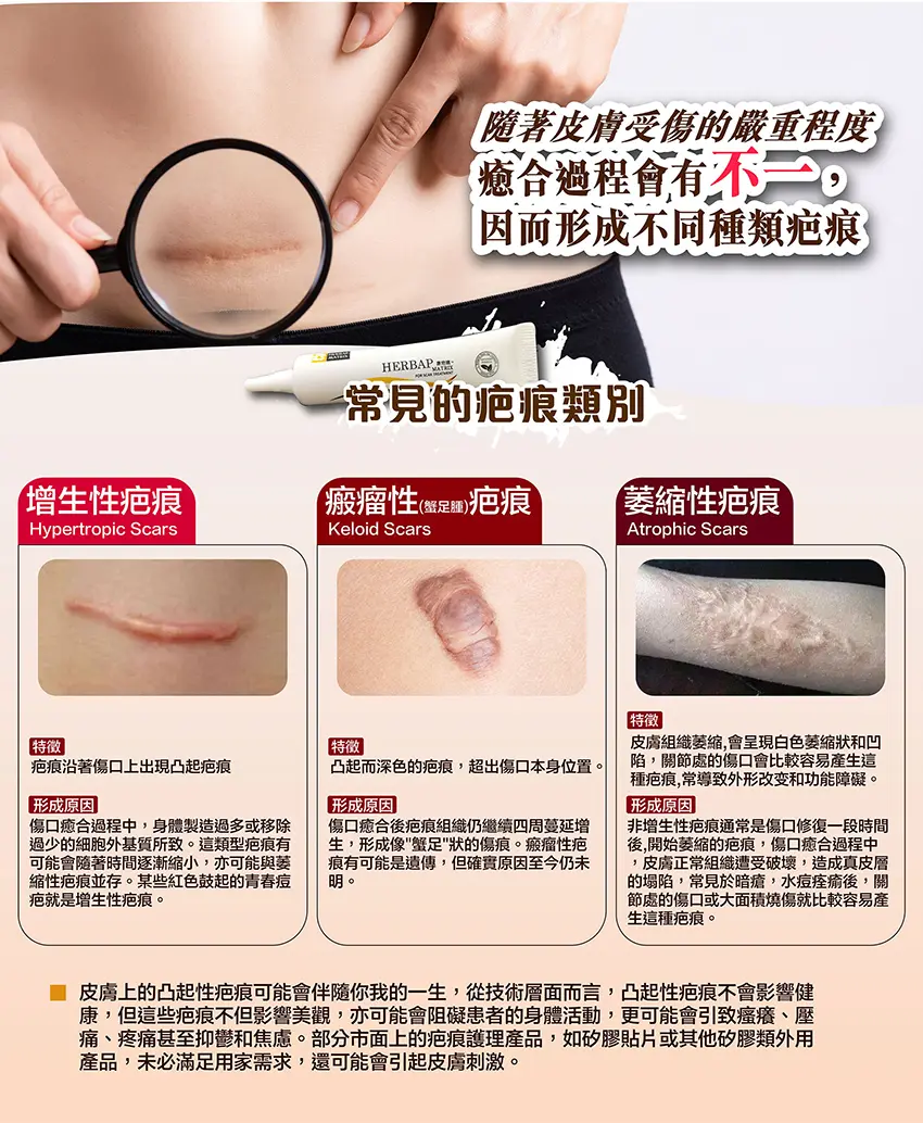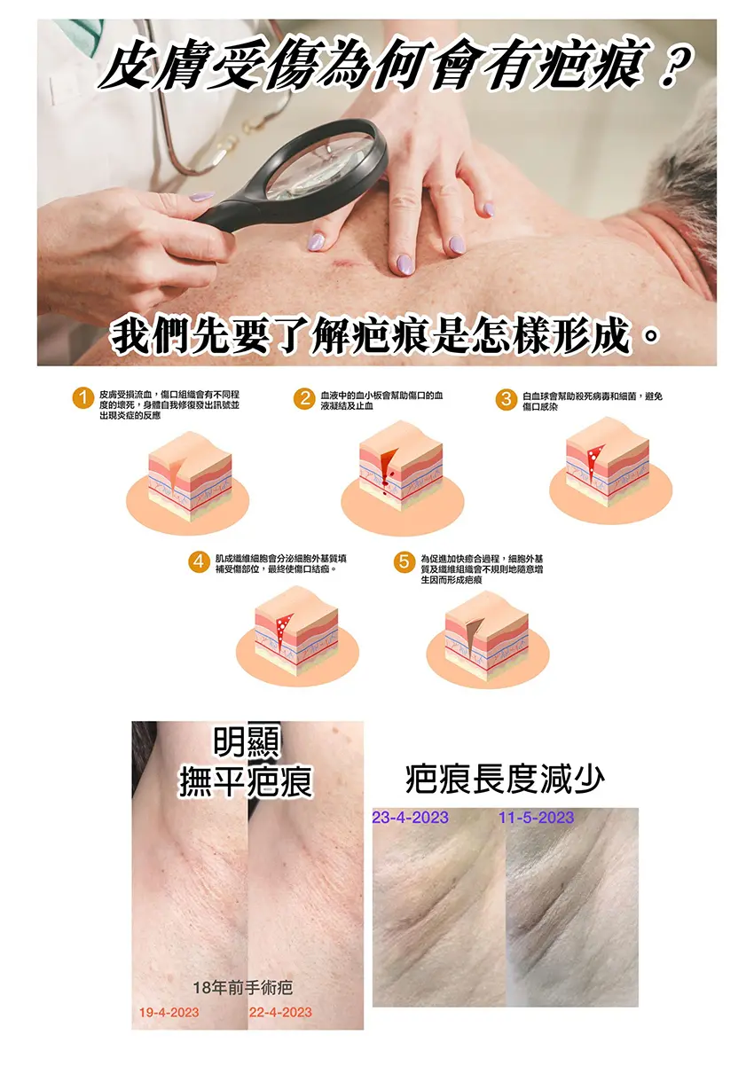 * 有效減低傷口感染、軟化、撫平、淡化疤痕